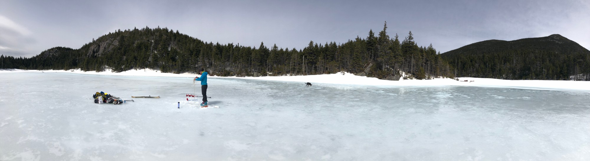 Ongoing projects focus on the role of elevational gradients in shaping lake phenology and ecosystem response to regional change. In collaboration with others at University of Maine-Orono, University of Maine-Farmington, the Appalachian Mountain Club, and University of New Hampshire, my work on small, high-elevation lakes in the northern Appalachian Mountains uses landscape features and water chemistry to understand drivers of change and ecosystem response. Recent questions include how high-elevation lakes preserve cold-water refugia, sensitivities of zooplankton assemblages to spring ice breakup phenology, and using high-resolution sensors to examine connections between lake productivity and conditions such as lake turnover (mixing), ice and snow phenology, and different kinds of precipitation events. Find papers and more on this work here.